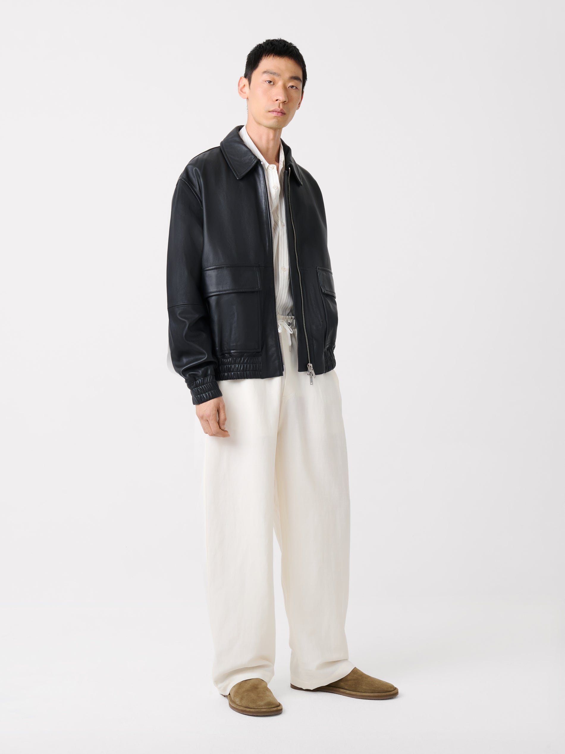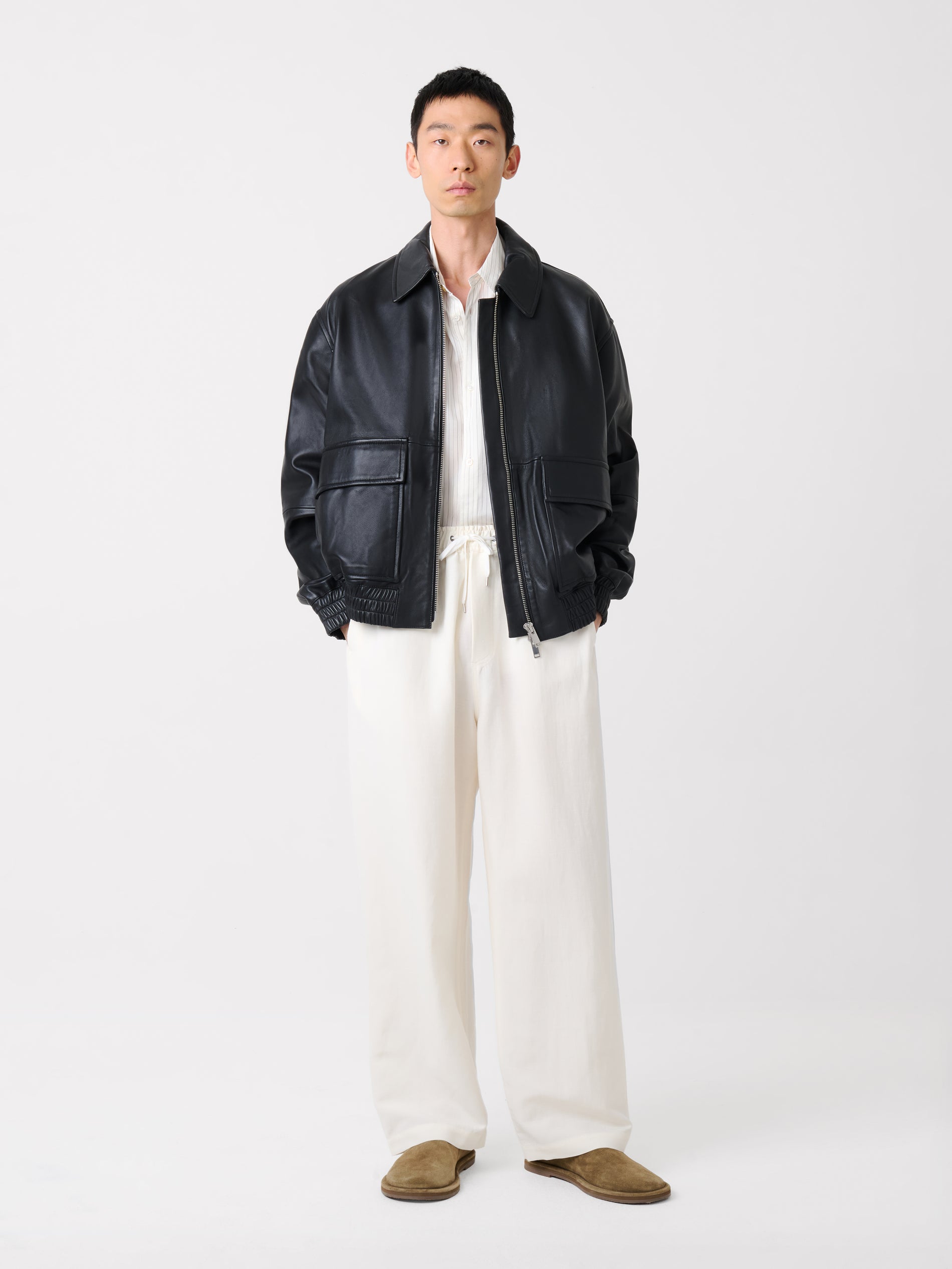 Our Sonny pant features a drawstring-fastening elasticated waist and a gently curved leg shape, signalling a relaxed feel. For this seasonal style we’ve used an Italian-milled antique wool and linen blend – a fabric noted for its slubby, uneven texture and refined hand feel.