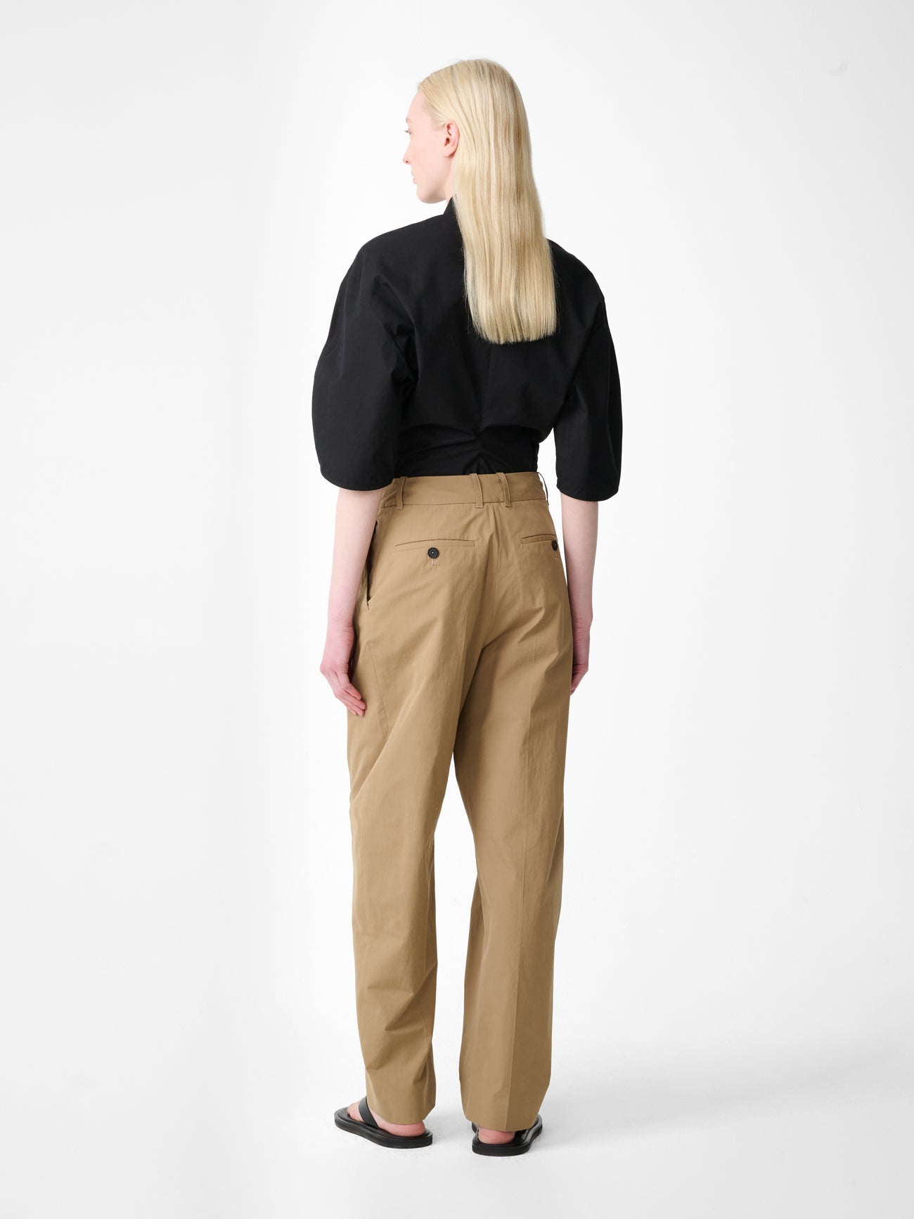 Refreshed for Summer Module '26, Sperro is cut from our sanded cotton: a breathable, resilient and high-twist woven fabric with a durable structure and a dry, smooth hand feel. The pair is fitted with double reverse pleats, crisply pressed creases and a gentle taper in the leg, underscoring Studio Nicholson’s considered tailoring.