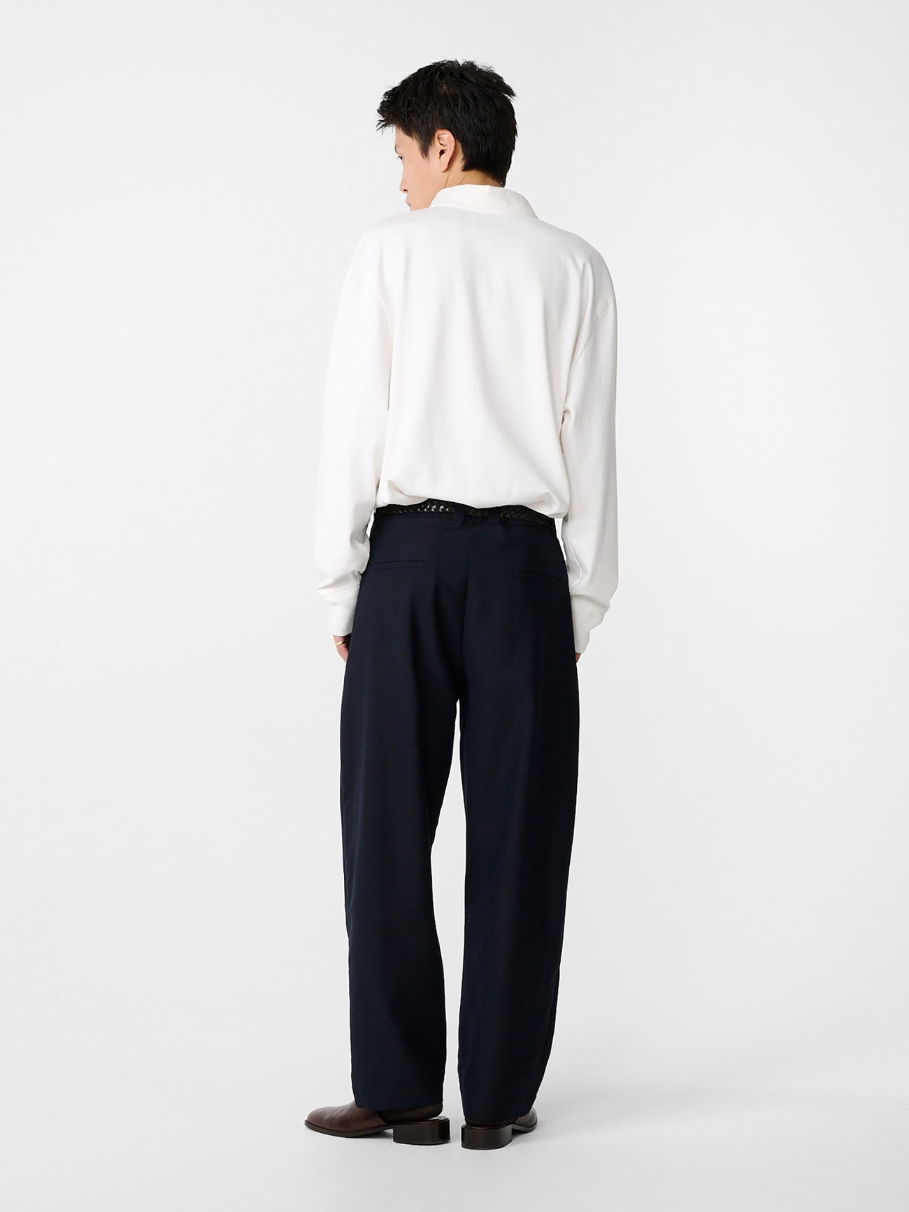 The Tuck pants have a cropped leg with a gently rounded shape. A single pleat front and mid-rise nod to traditional tailoring. They’re cut from our heritage wool – a British-milled worsted wool selected for its breathability and a dry, crisp hand feel