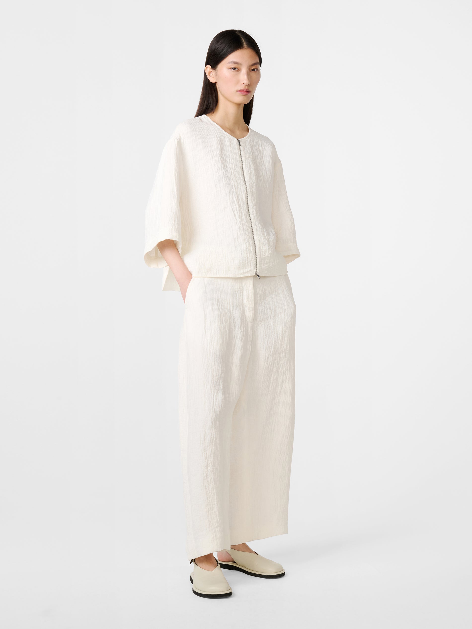 A sharp example of contemporary tailoring, the Tuttle is cut from our shrunk double linen: an Italian double-layer linen that’s woven with cotton then tumbled and shrunk to create a washed-down, textured look. This short-sleeved style is fitted with a sportswear-inspired two-way zip front and has side slits for added ease.