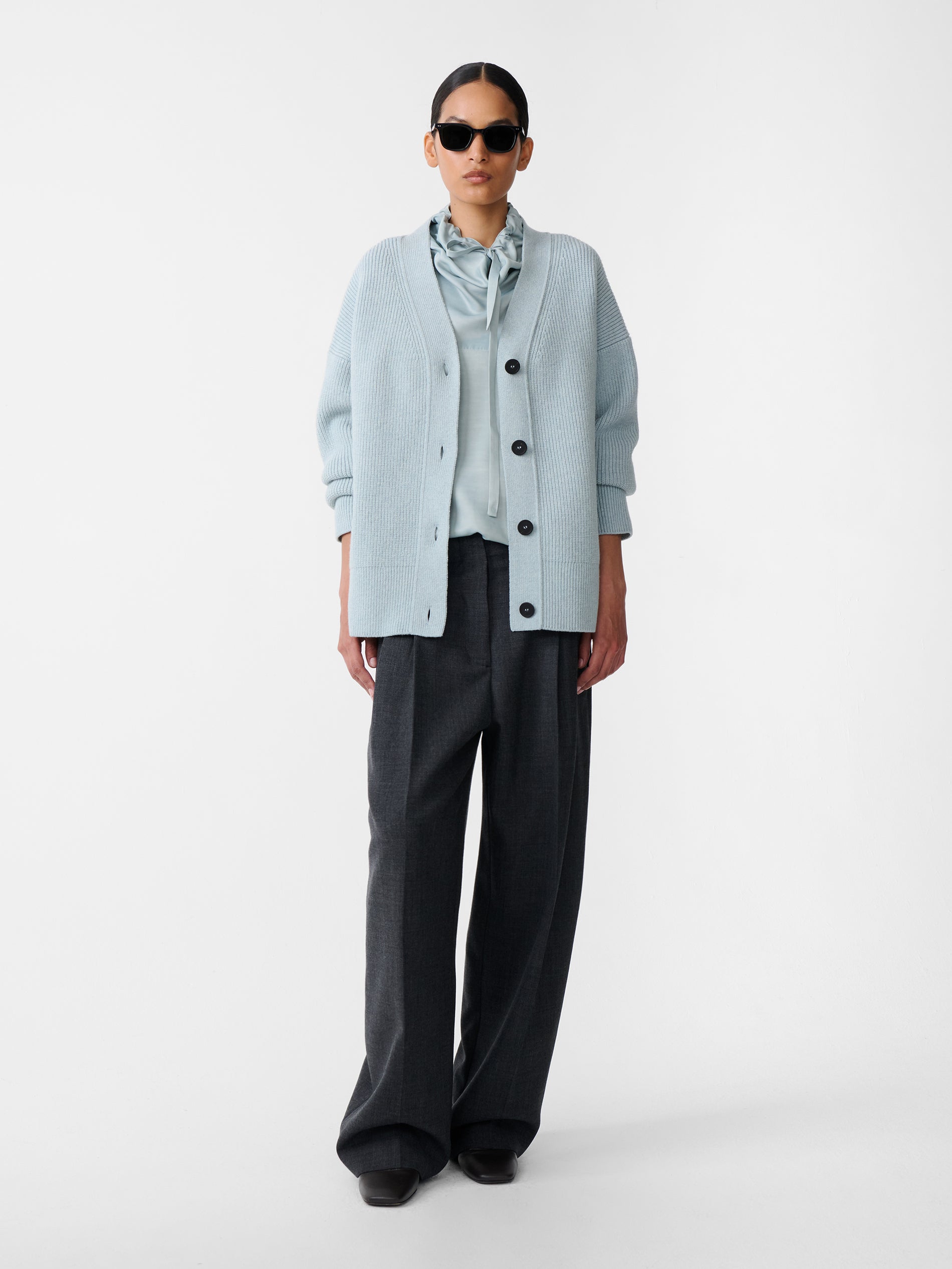 Our Whitt cardigan is defined by its versatility. Perfect for layering, it’s crafted in our merino wool rib – a RWS-standard extrafine merino wool that has a satisfyingly hefty hand feel. Whitt is constructed to a boxy fit with dropped shoulders that recall the relaxed knits featured throughout our Winter ’25 collection.