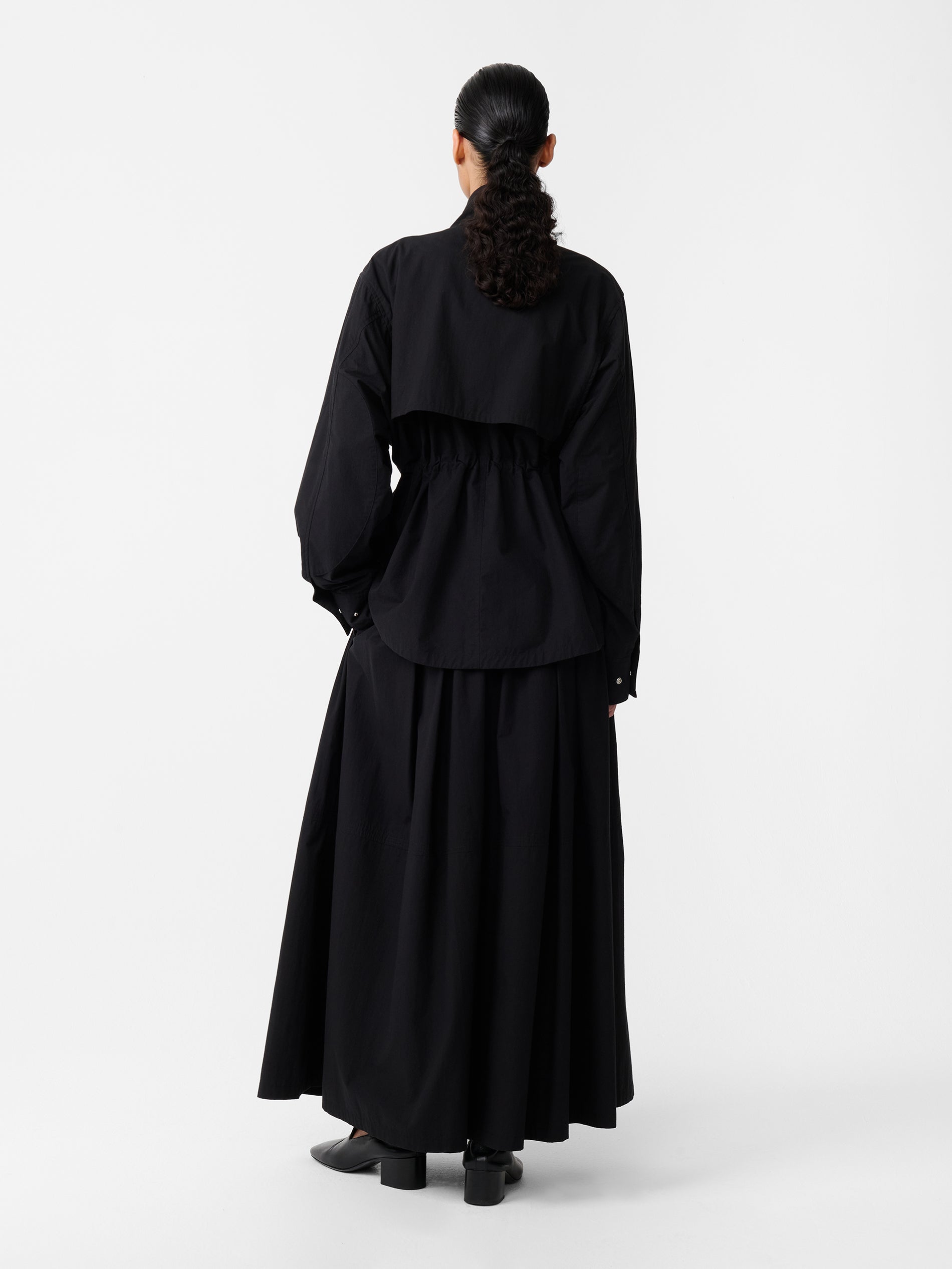 Studio Nicholson leans into classic field jacket silhouettes to create the Vista. It’s cut from our ‘typewriter’ cotton – a Japanese fabric chosen for its soft papery texture and the gentle rustling sound as it moves with the body. The jacket is crafted with dolman sleeves, four generous flap pockets and an elasticated drawcord waist that creates a relaxed, blouson fit.